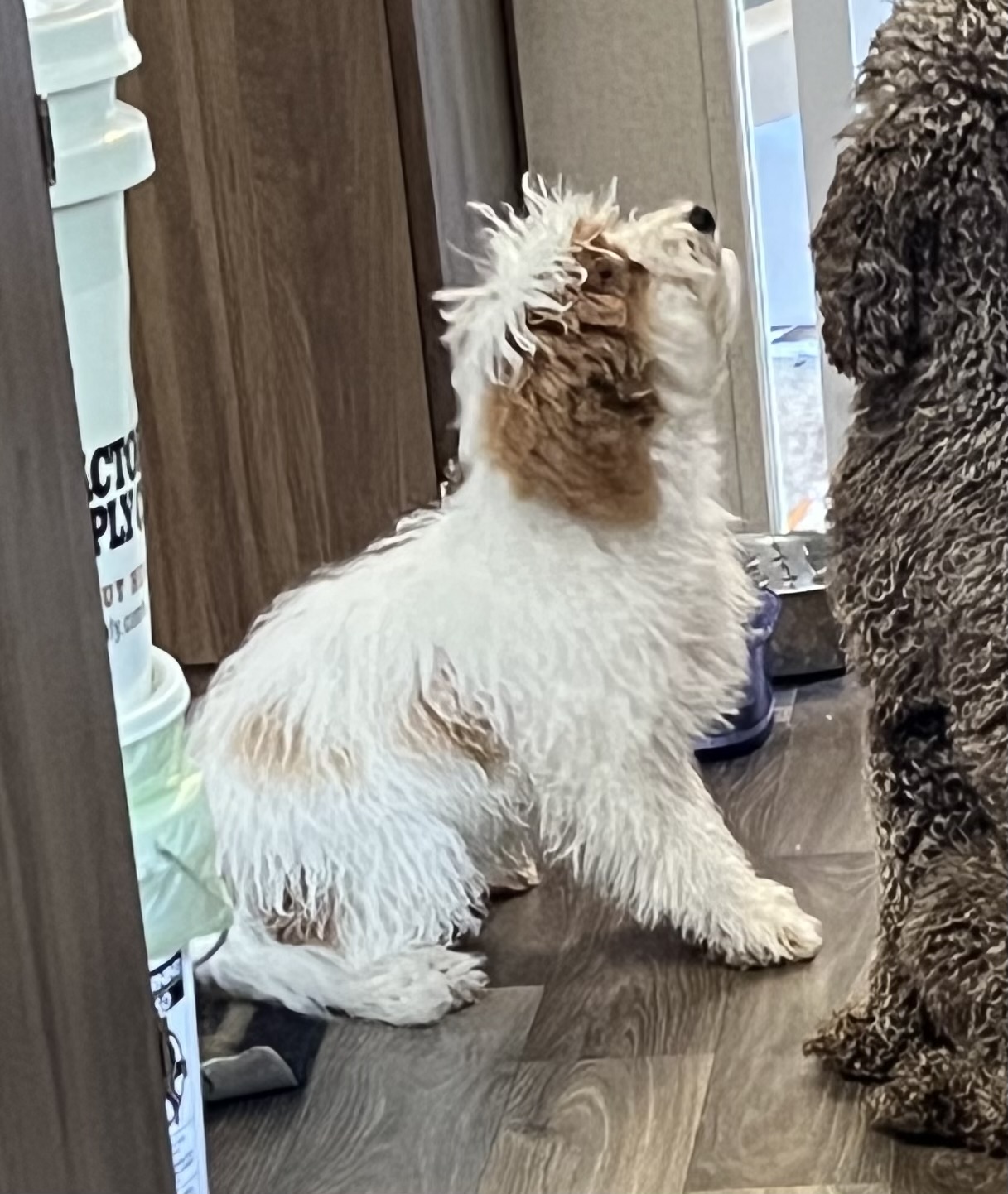 Barney: Xena Yellow/ Orange collar Boy: Multi Generation Labradoodle: Chocolate Parti few waves