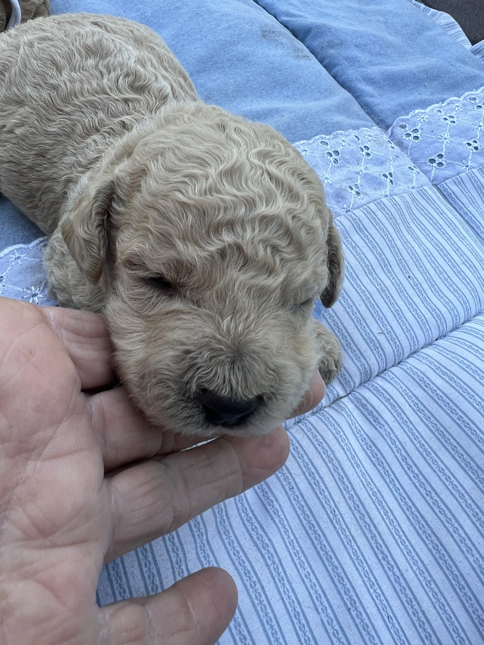 Ambers White collar girl: Creamy Tan Mini/Medium Goldendoodle