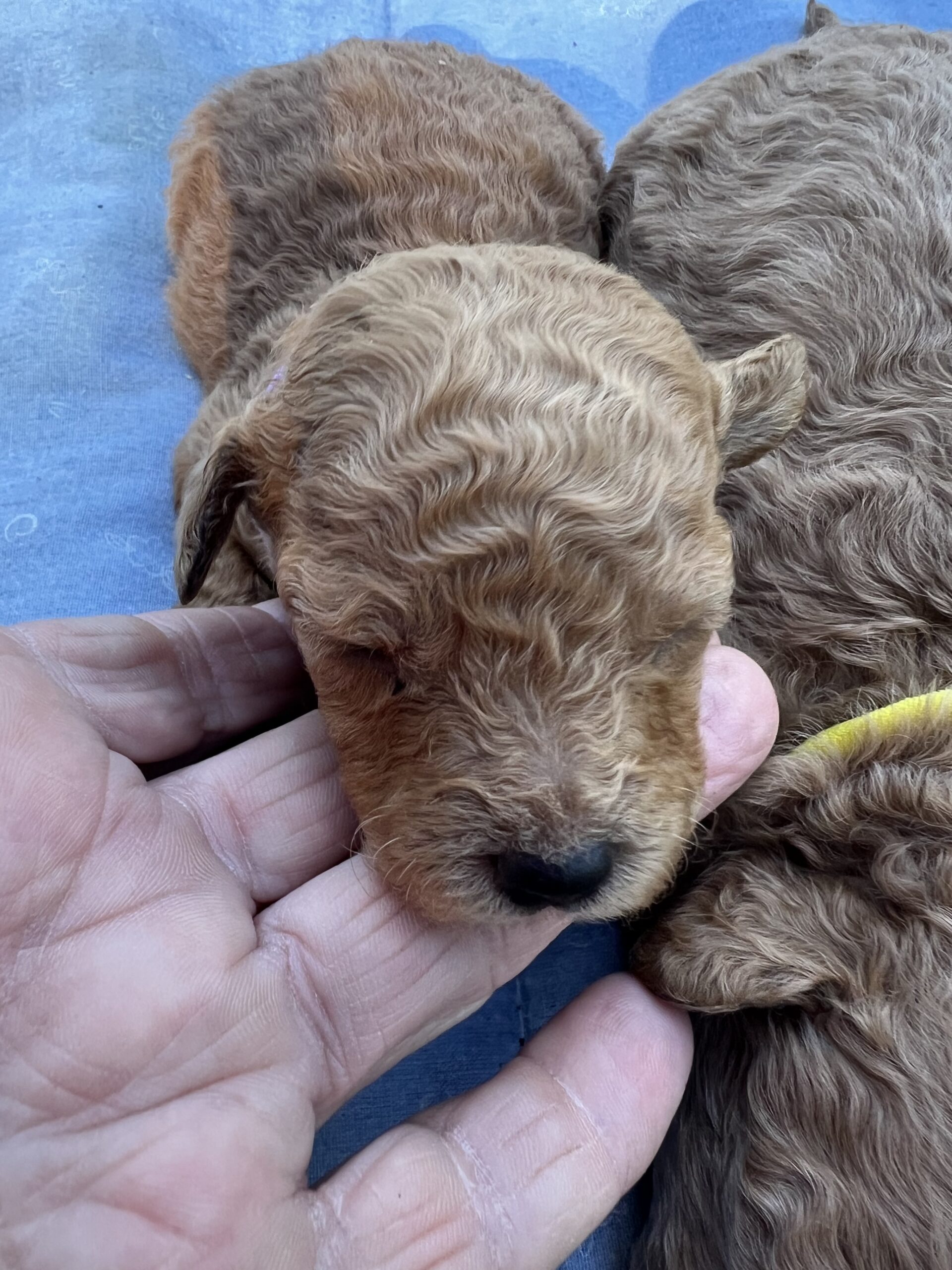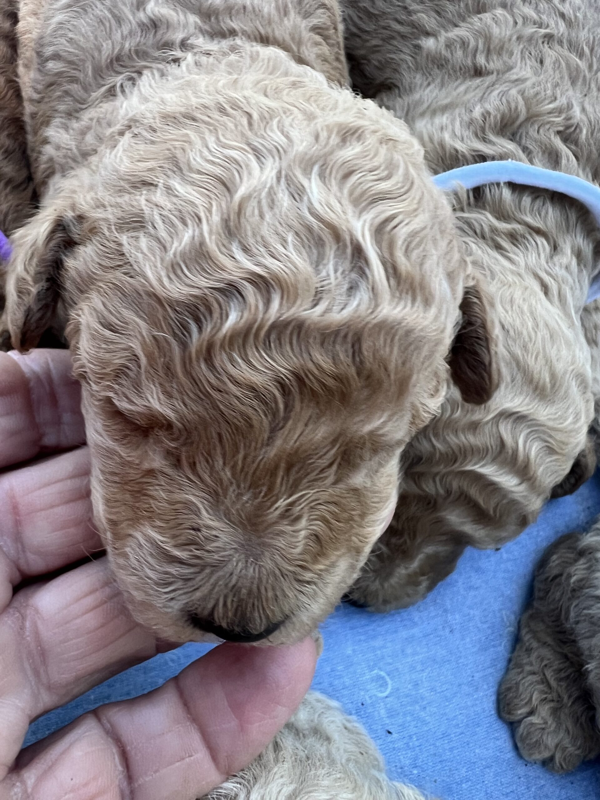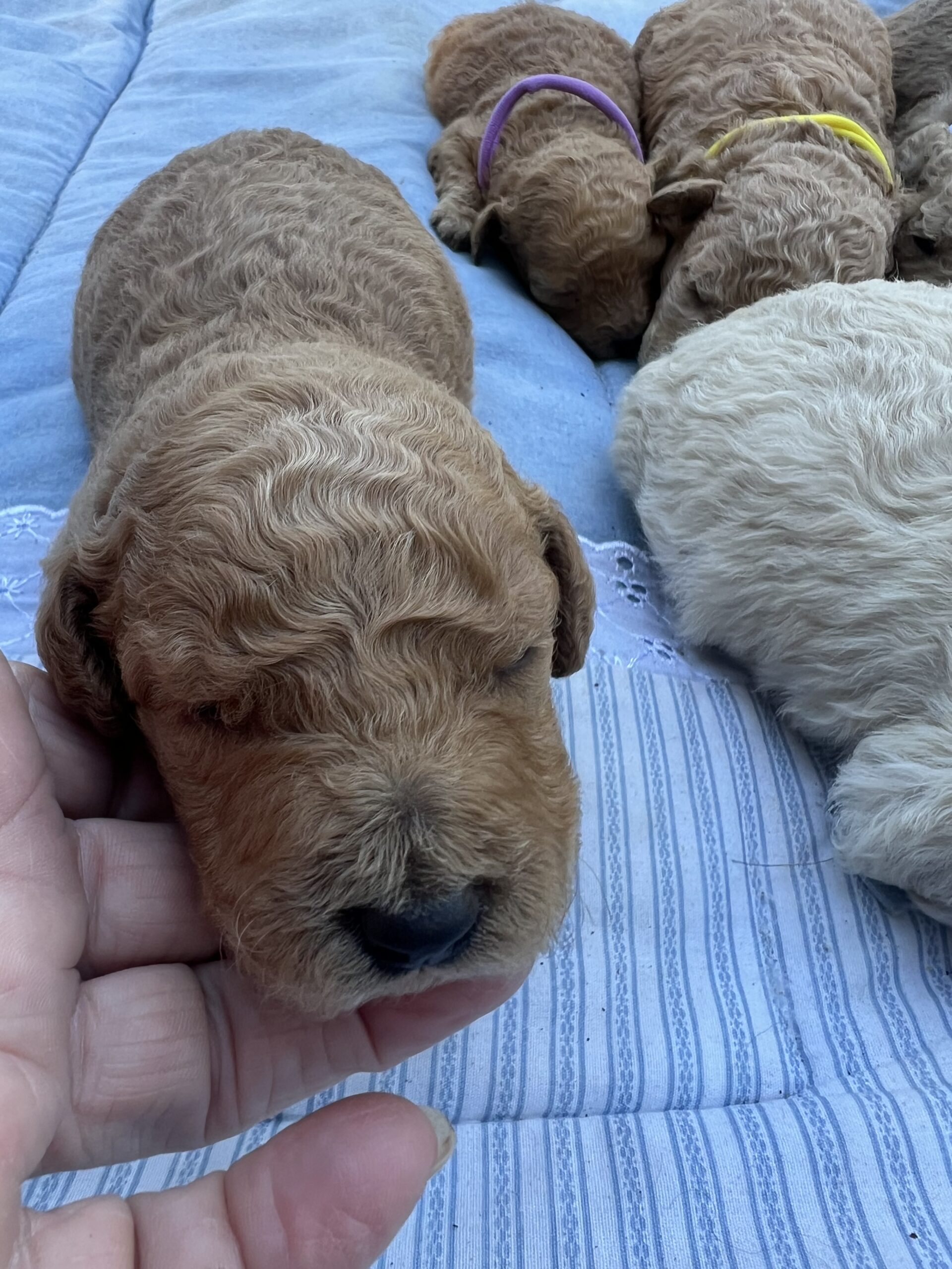 Adopted: Ambers purple collar girl: Dark Apricot Mini/Medium Goldendoodle