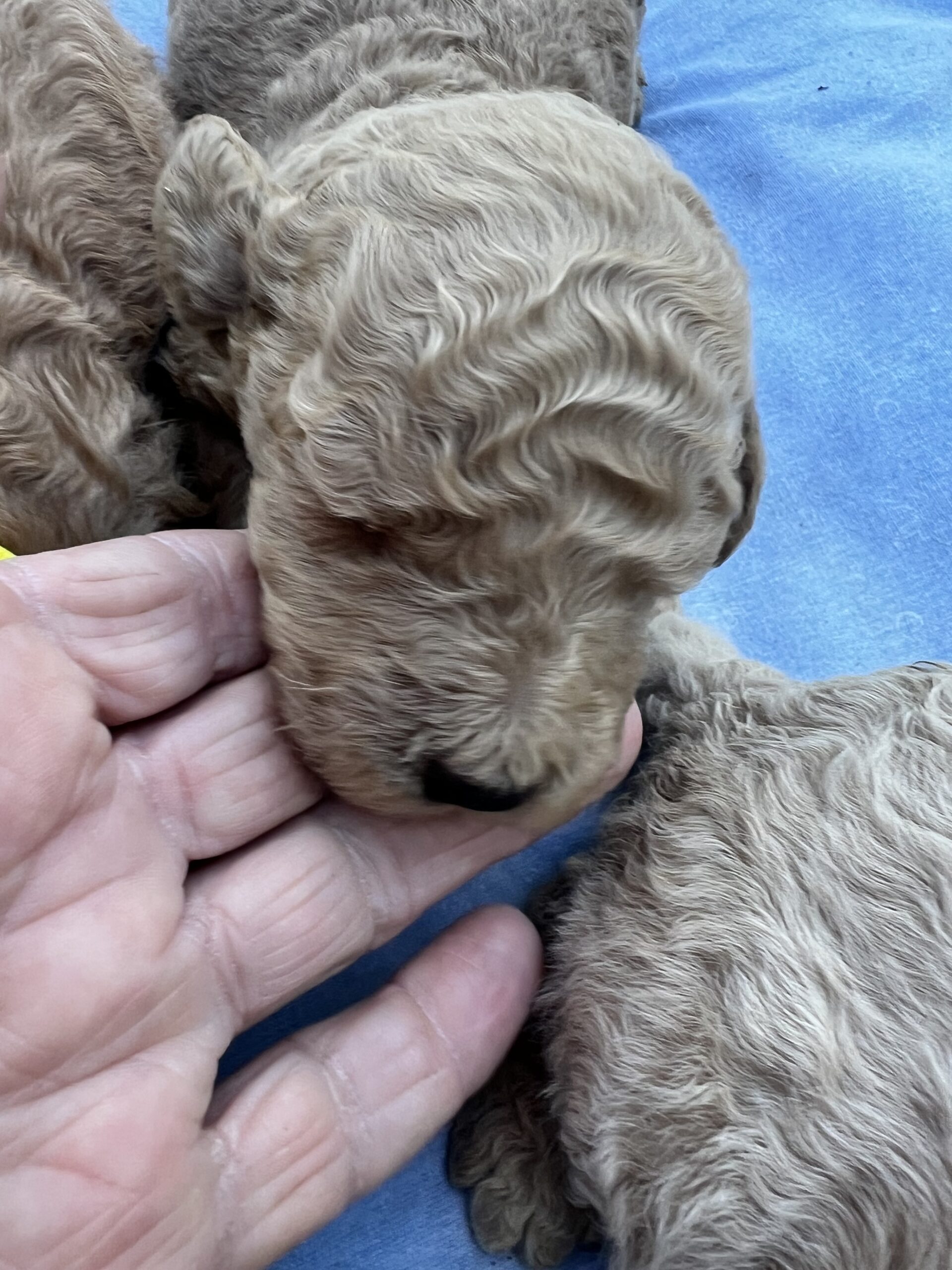 Adopted: Ambers Yellow collar girl: Creamy Tan Mini/Medium Goldendoodle