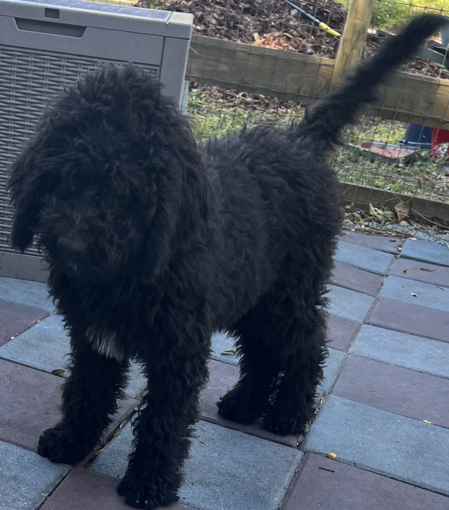 Gidget: Aussie Green/White collar Girl: Multi Generation Standard Black Labradoodle