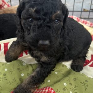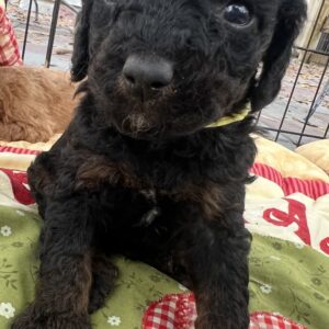 Royals Red collar boy: F1b Black Phantom Mini/ Medium (29pds full grown) Goldendoodle