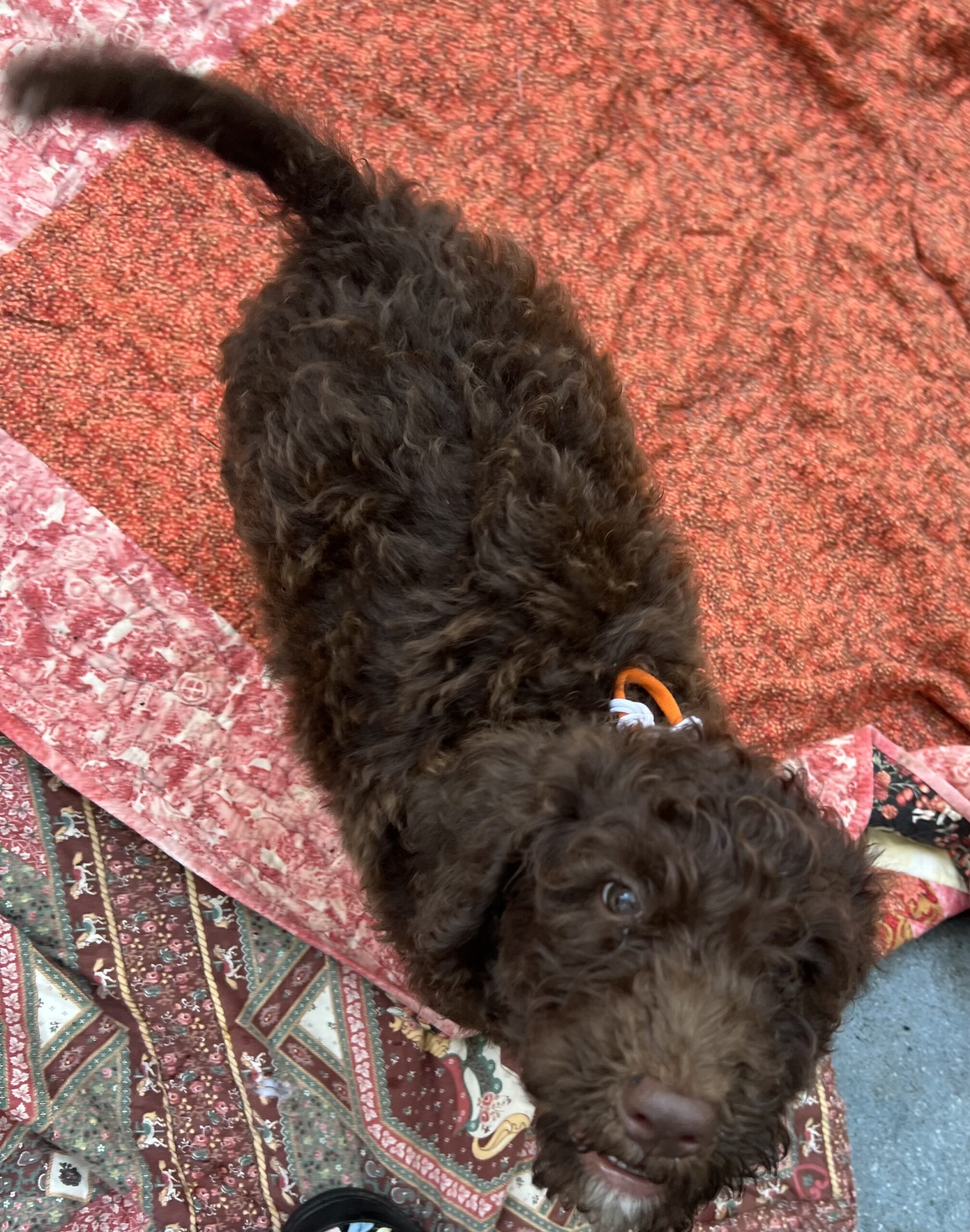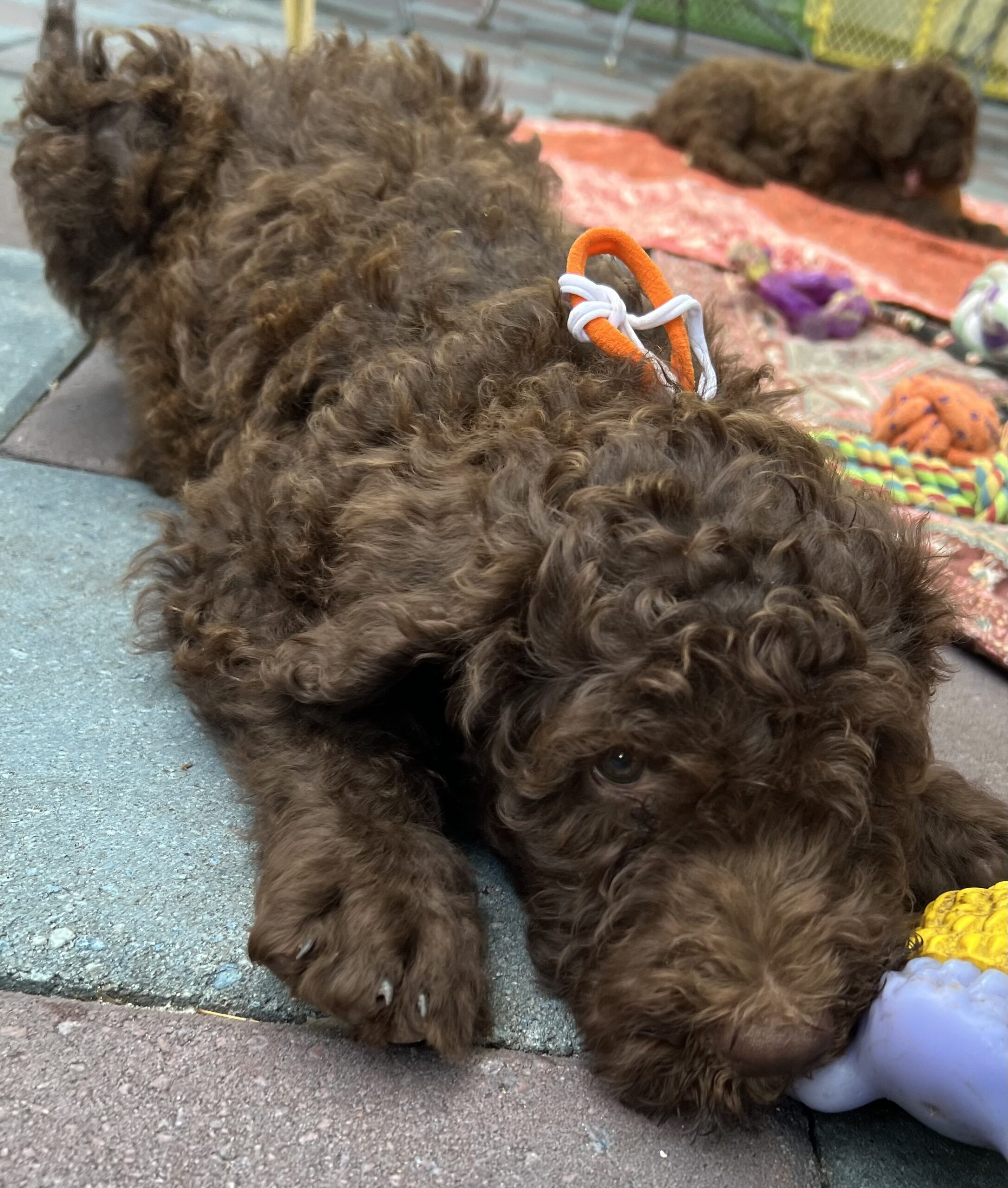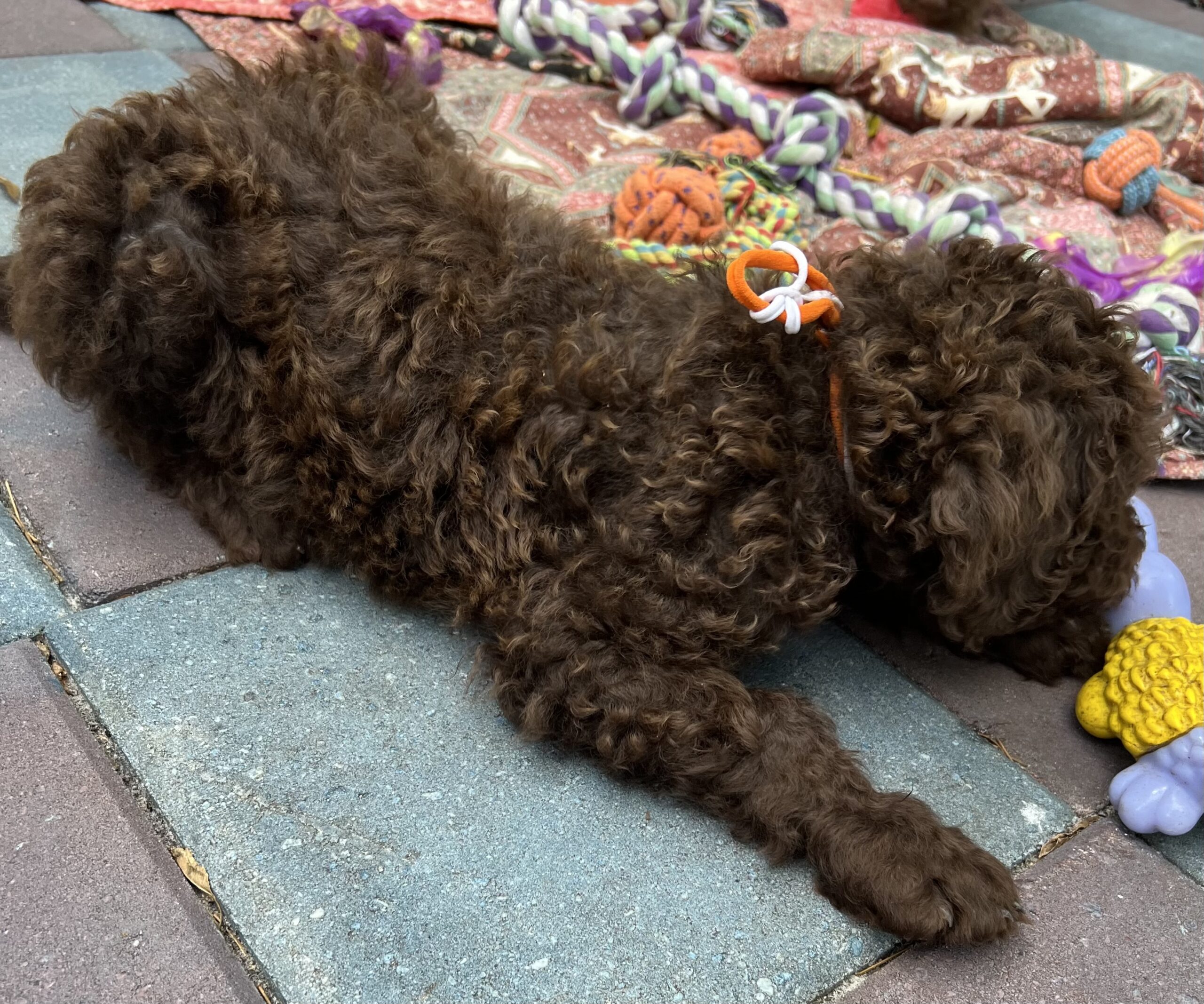 Sire: Toby F1B Chocolate Parti Labradoodle 45 pounds