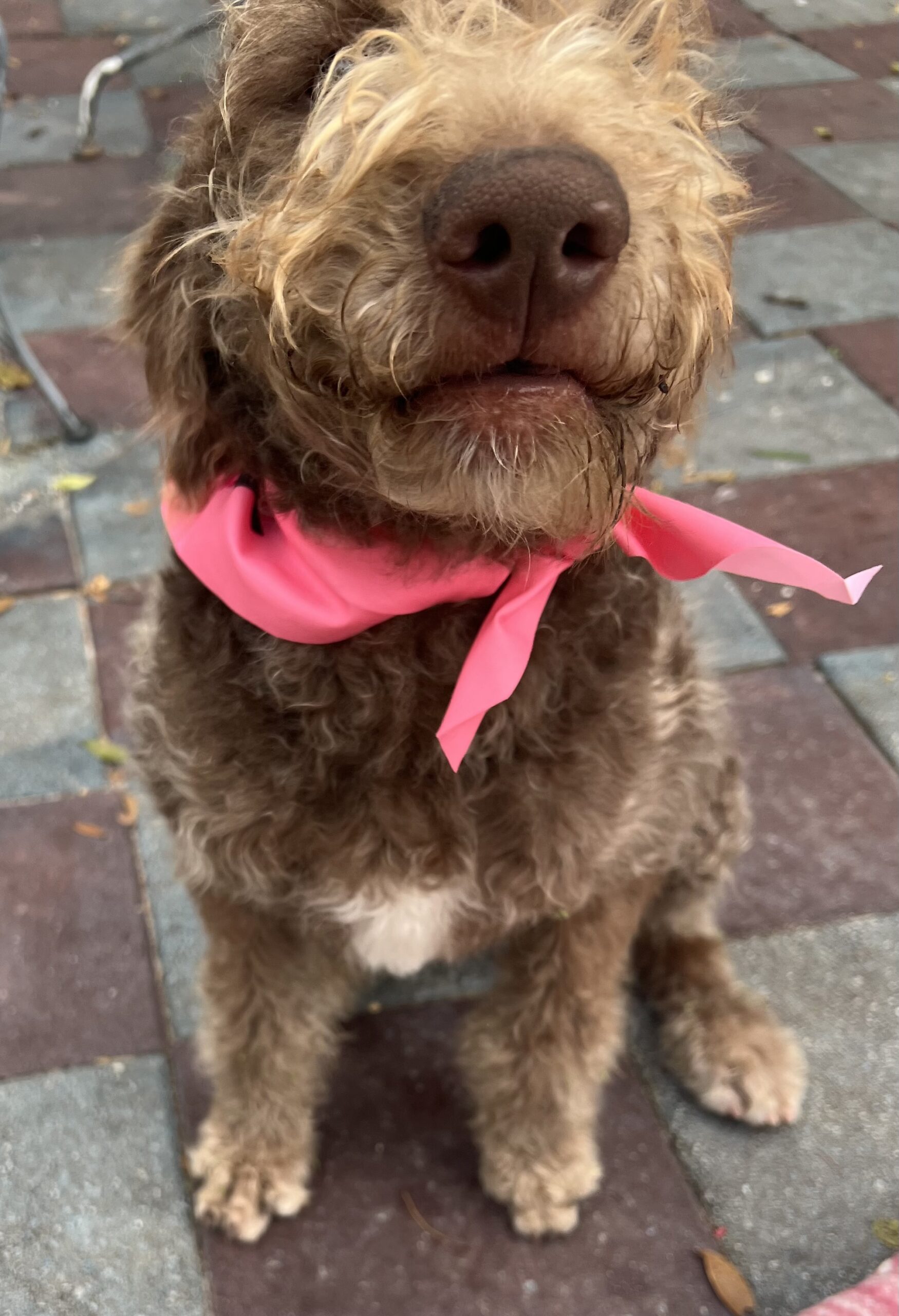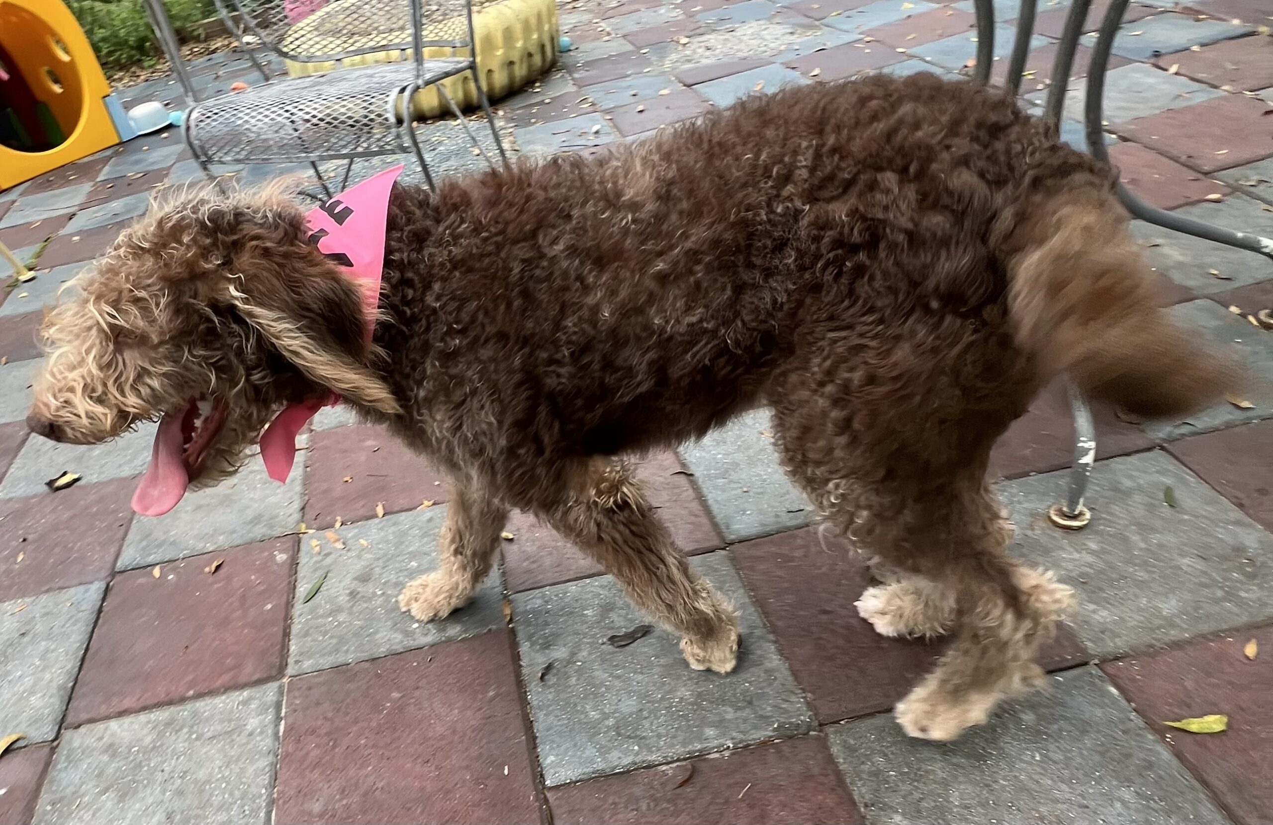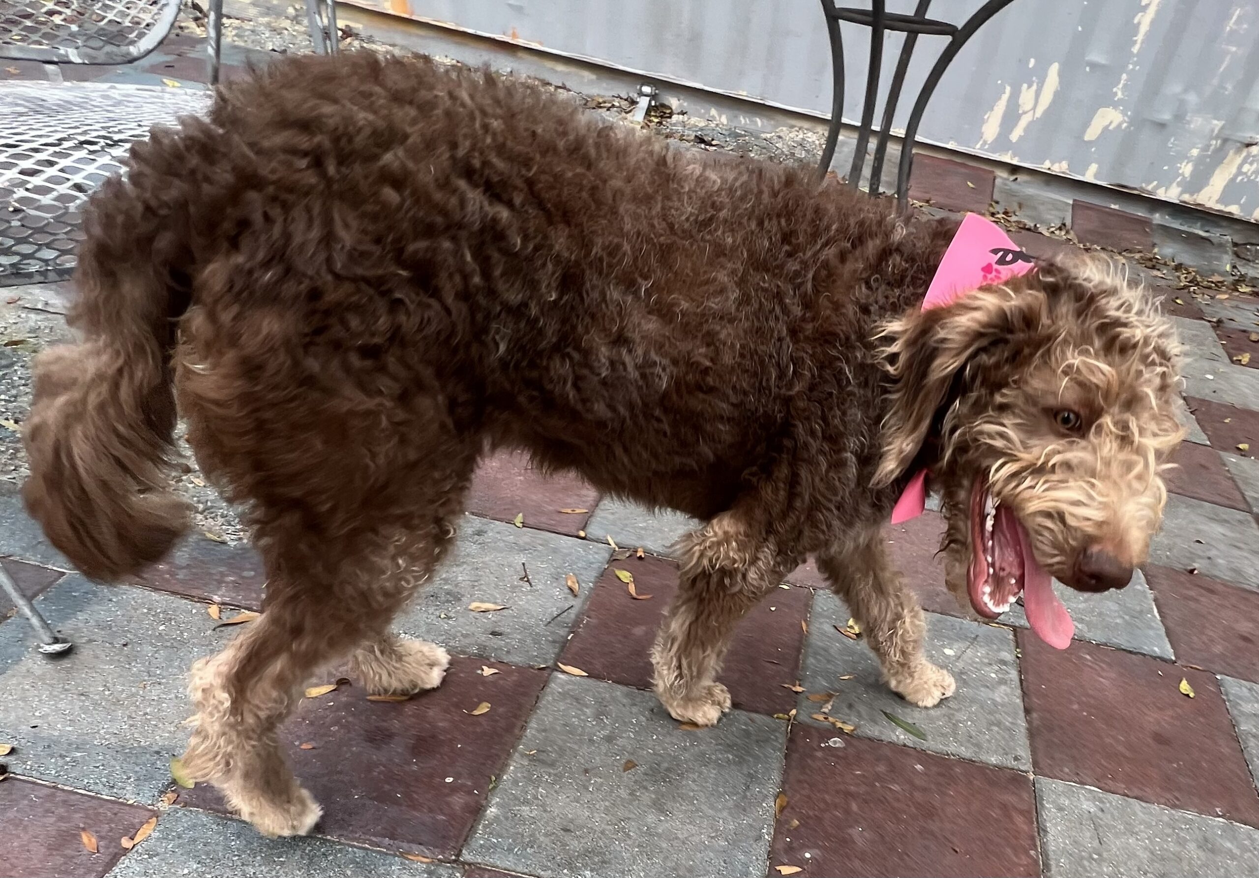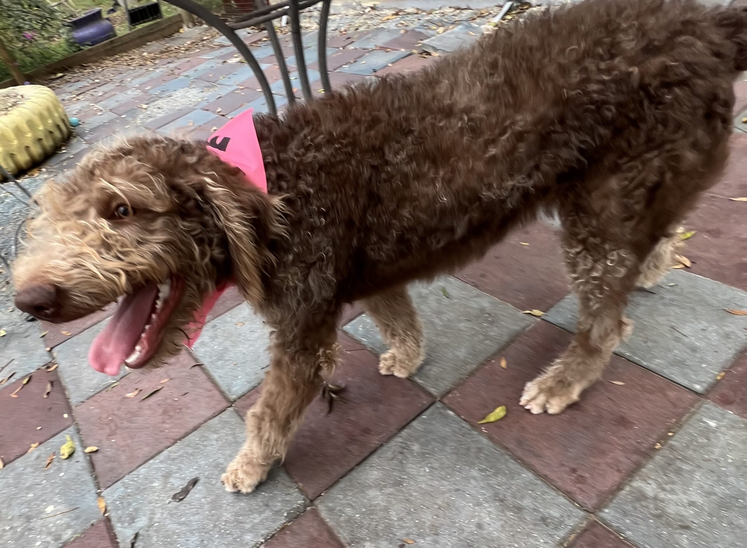 Sire: Toby F1B Chocolate Parti Labradoodle 45 pounds