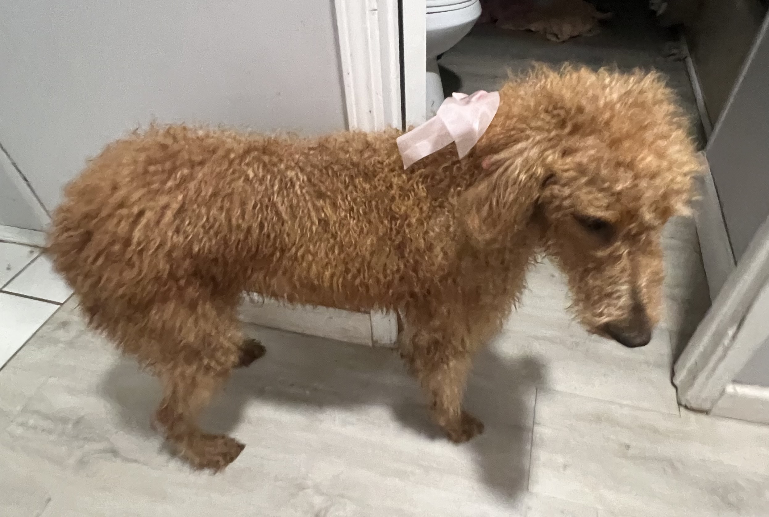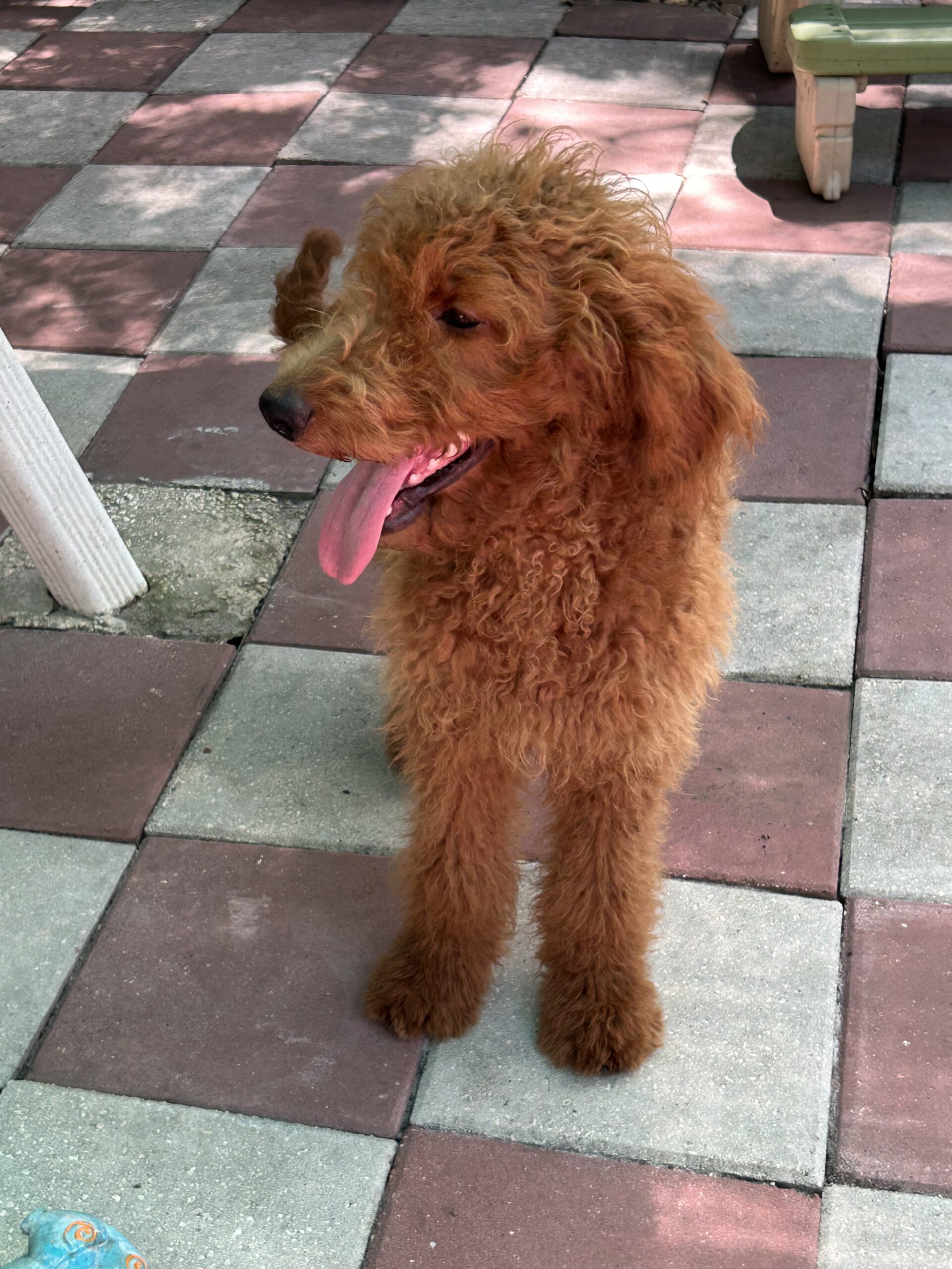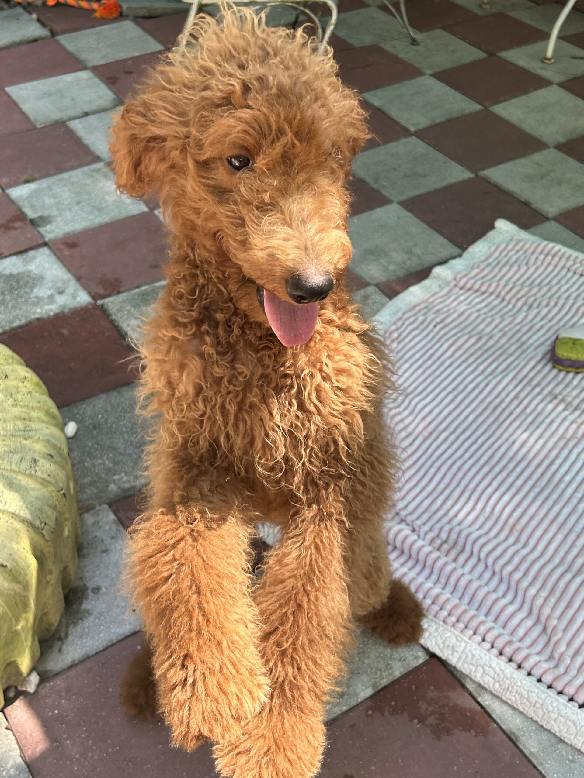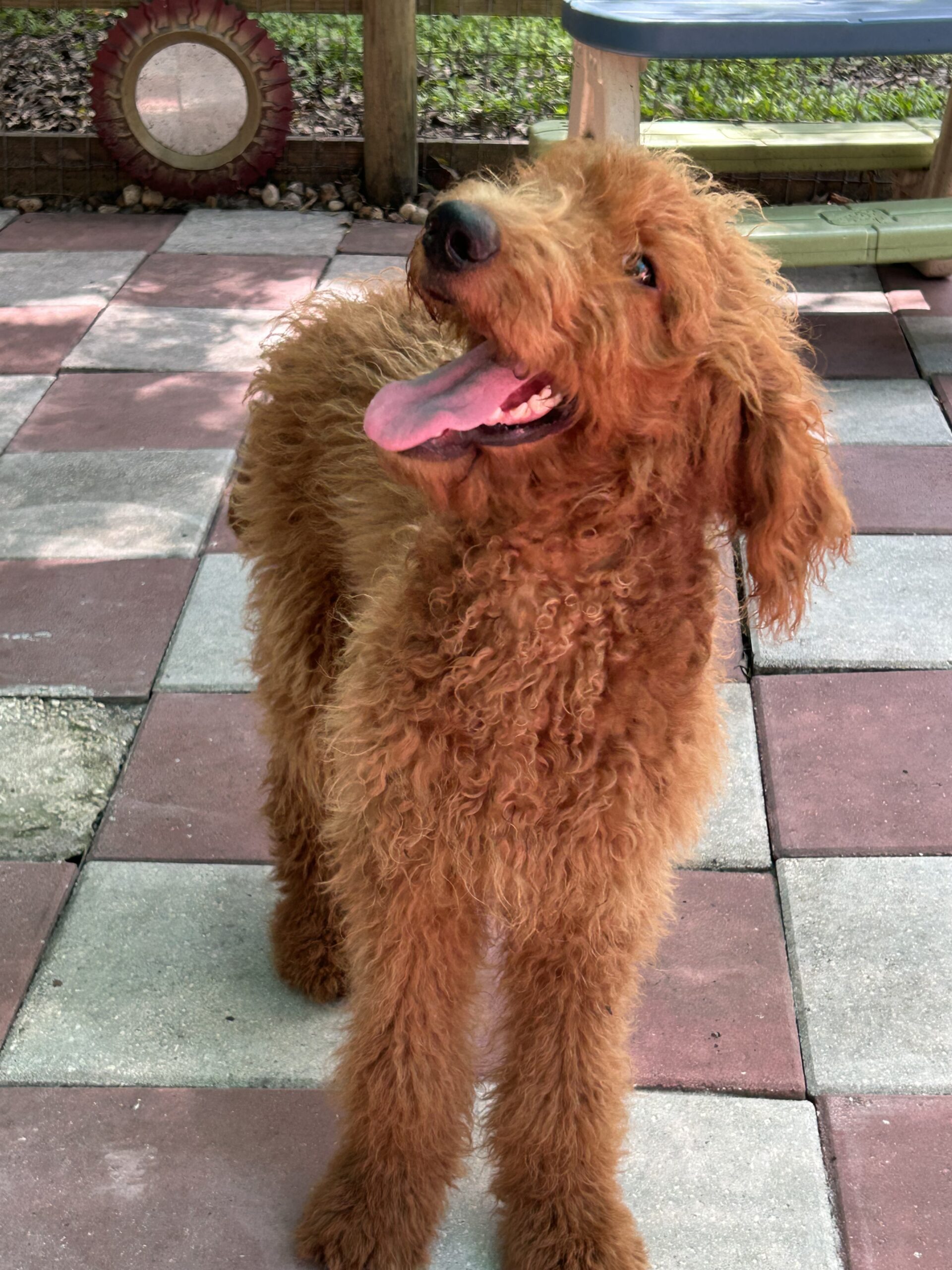 Foxy is a very sweet Apricot/ Red Goldendoodle, she has a wavey/curly very low shedding coat. She is microchipped and up to date on everything age appropriate, she needs to be trained and fixed.