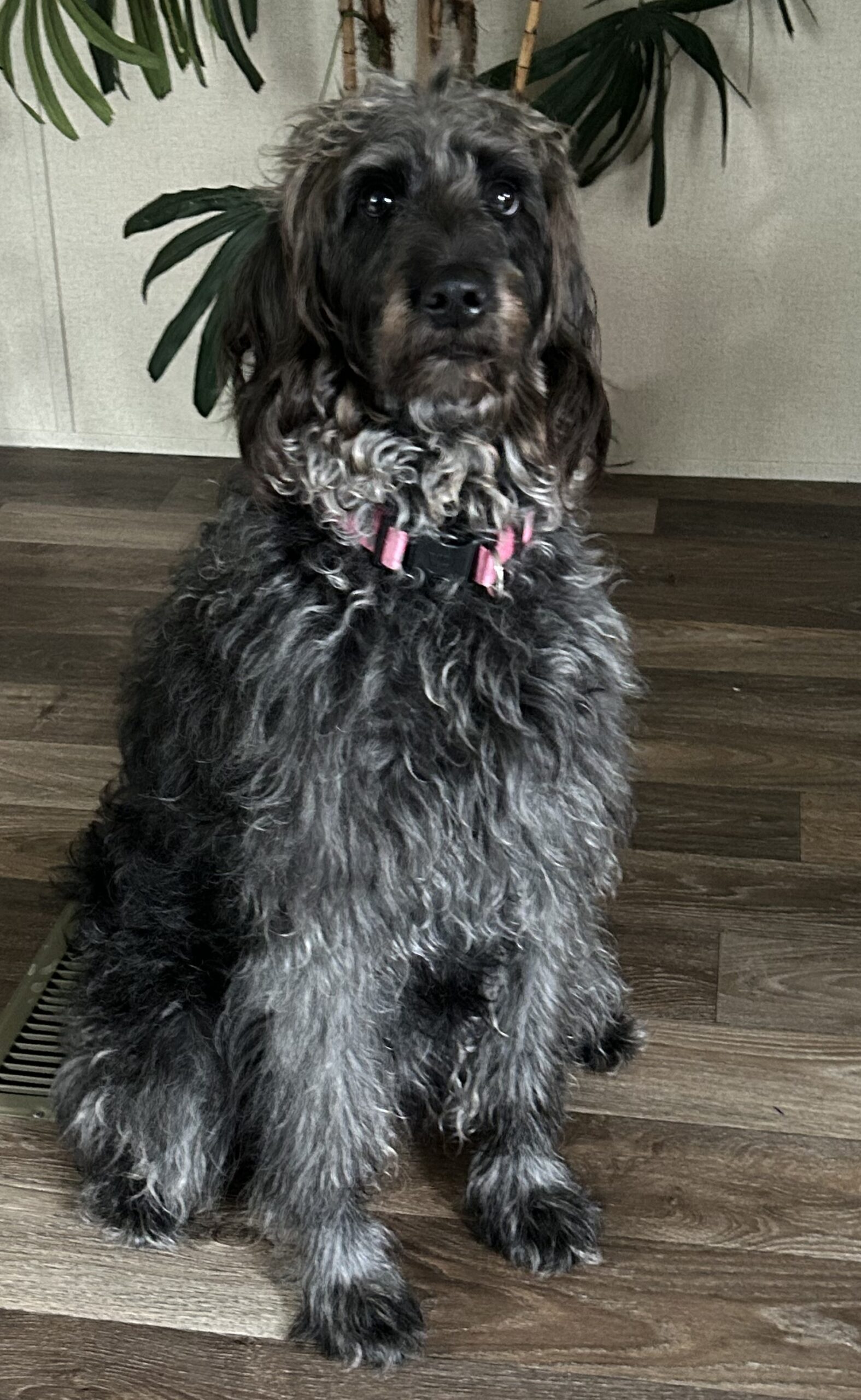 Congratulations to Angel andf family! Miss Kitty is a very sweet f1b Light Chocolate/ Silver Very low shedding Labradoodle girl looking for her FUREVER home where she can spend the rest of her life being a very loved couch potato.