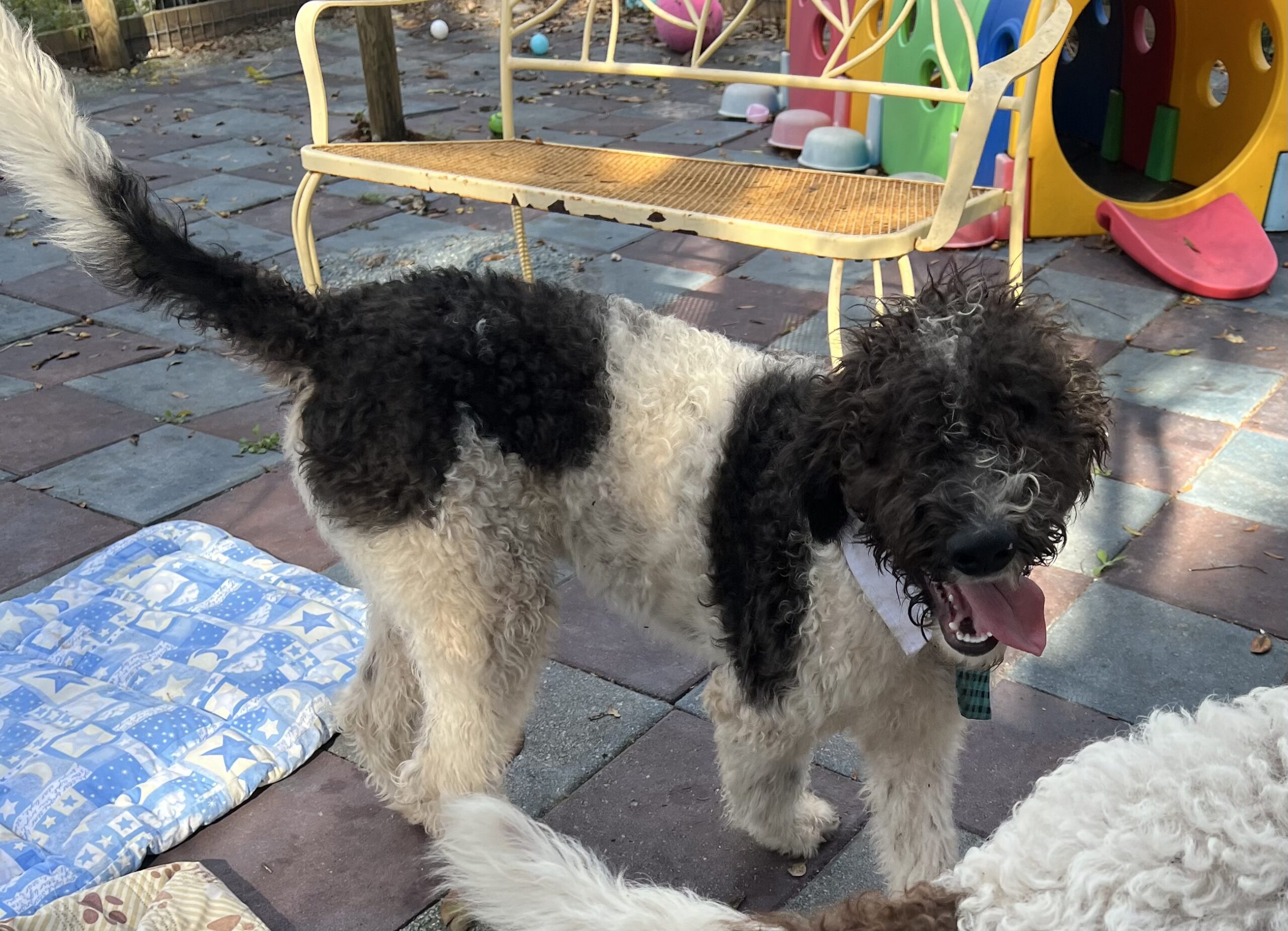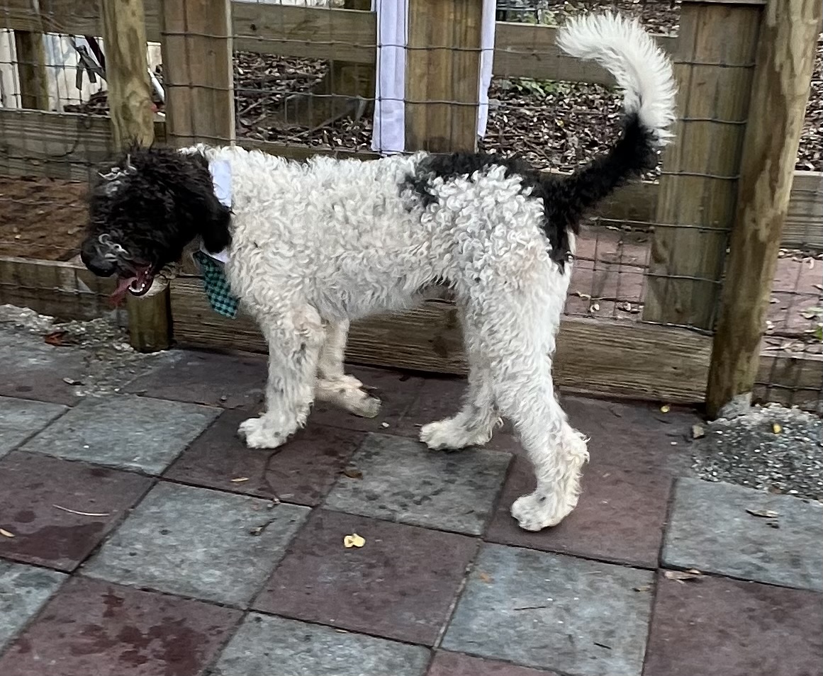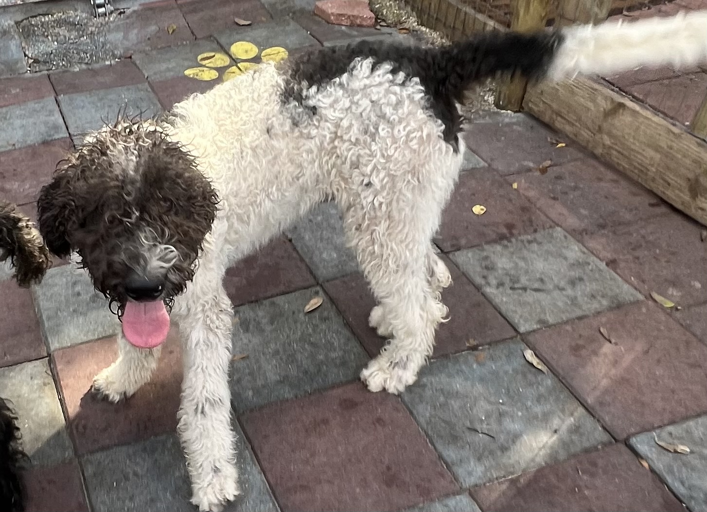 Sire: Toby F1B Chocolate Parti Labradoodle 45 pounds