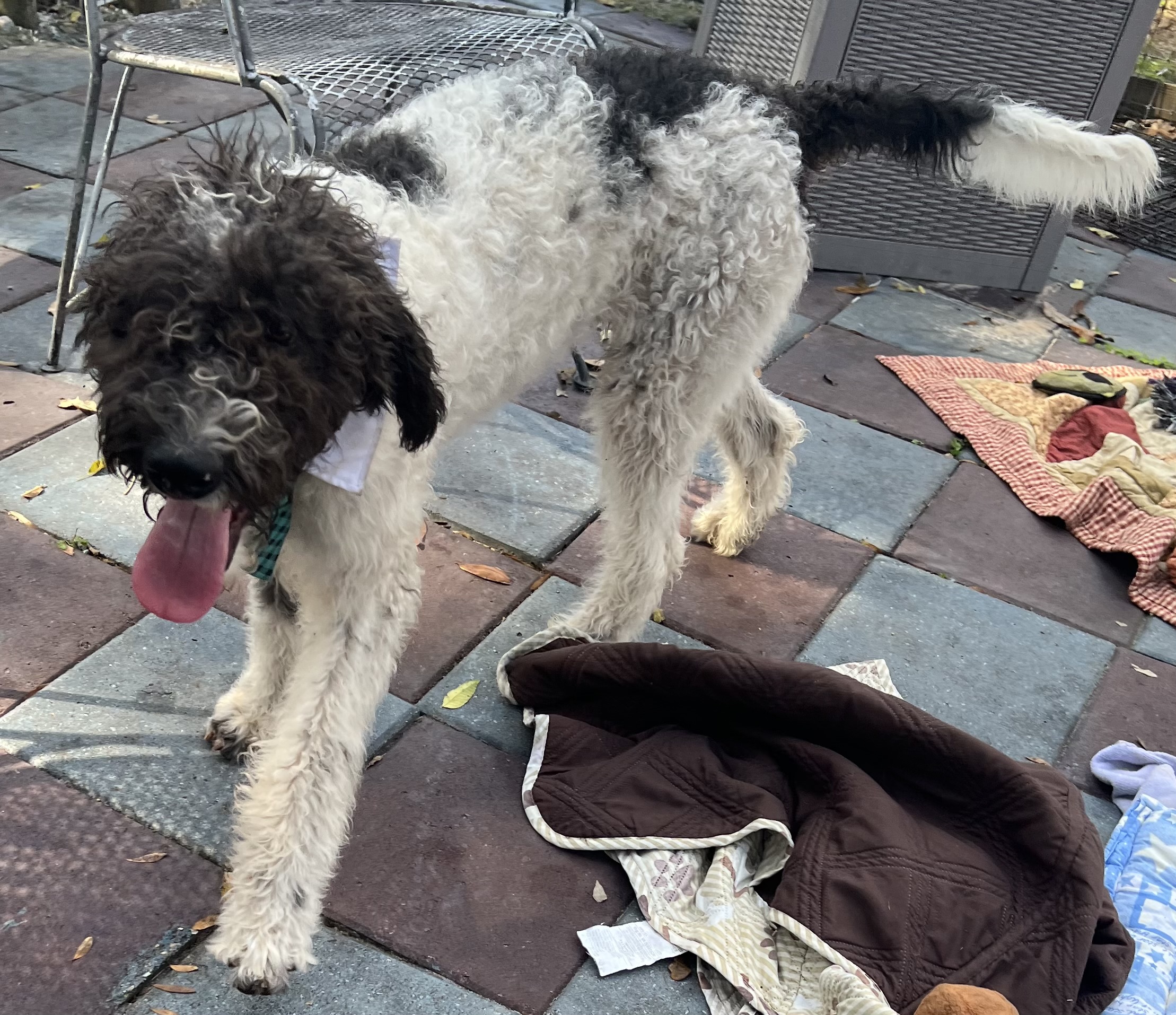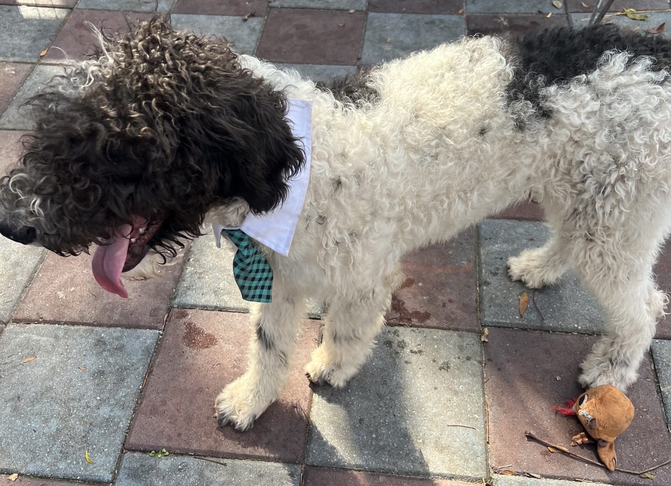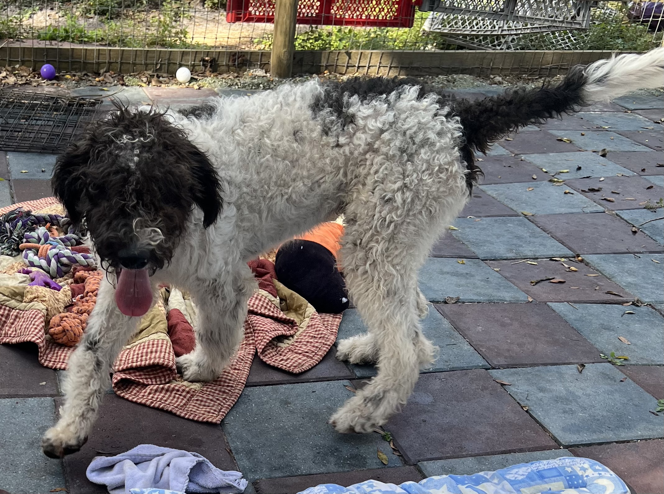 Sire: Toby F1B Chocolate Parti Labradoodle 45 pounds
