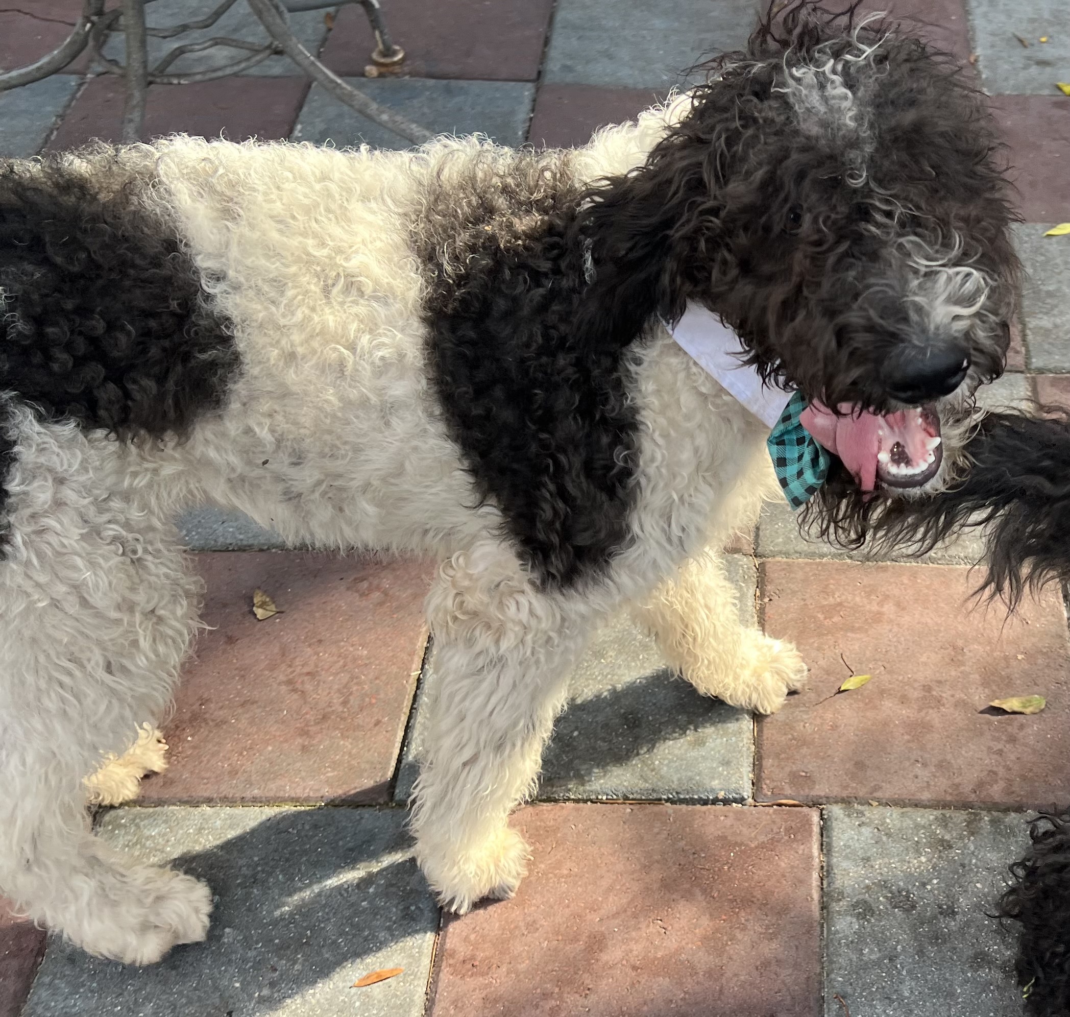 Fred is a Gorgeous Black Parti Labradoodle (white with Black markings), low shedding coat with very few waves! Very sweet playful boy!